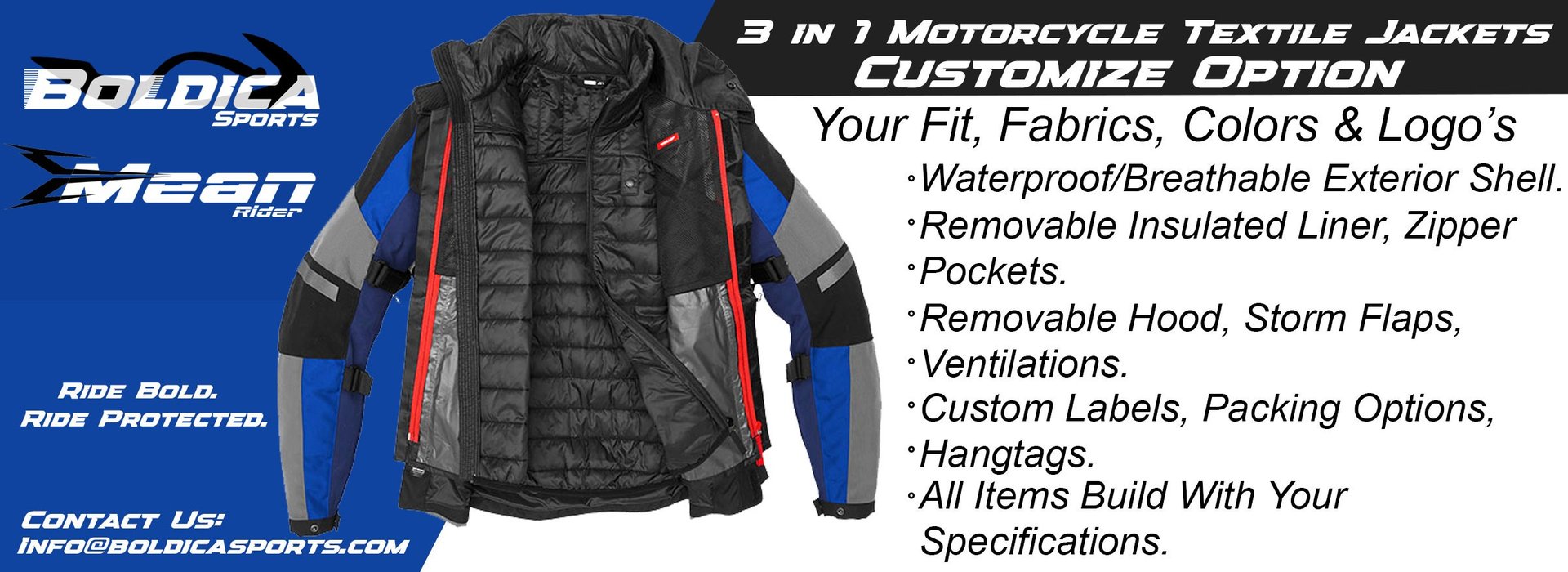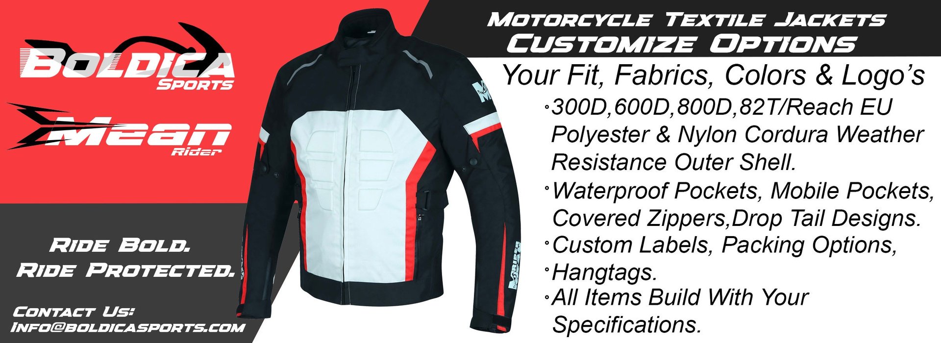 At Boldica Sports, we proudly manufacture high-quality textile motorcycle garments for riders who value performance, protection, and style. Our extensive range of men’s and women’s textile motorbike jackets and jeans is designed to meet the demands of every riding condition.